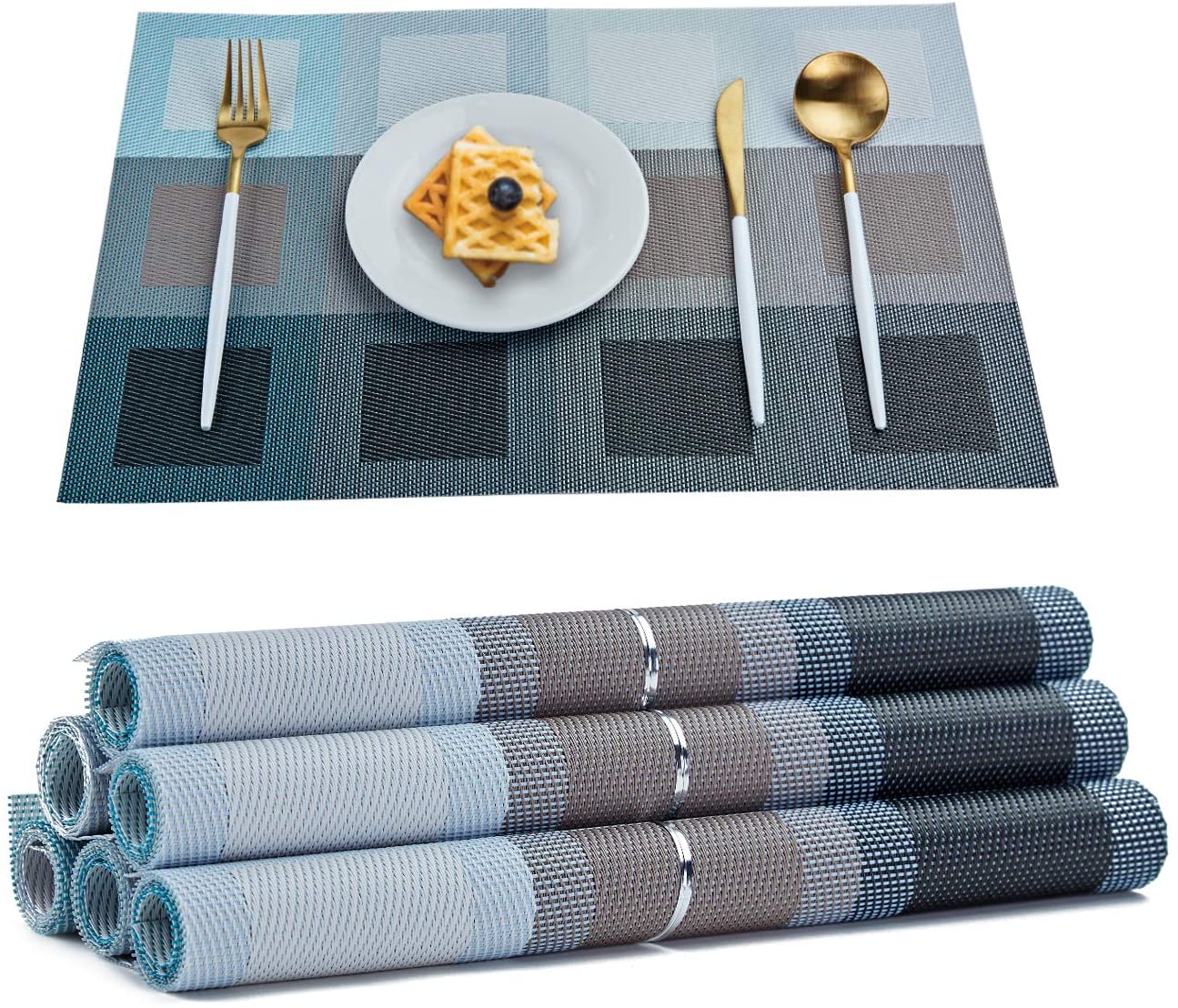 Placemats Set of 6 Woven Vinyl Table Mats, Kitchen Dining Table Decoration